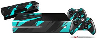 Jagged Camo Neon Teal - Holiday Bundle Decal Style Skin fits XBOX One Console Original, Kinect and 2 Controllers (XBOX SYSTEM NOT INCLUDED)