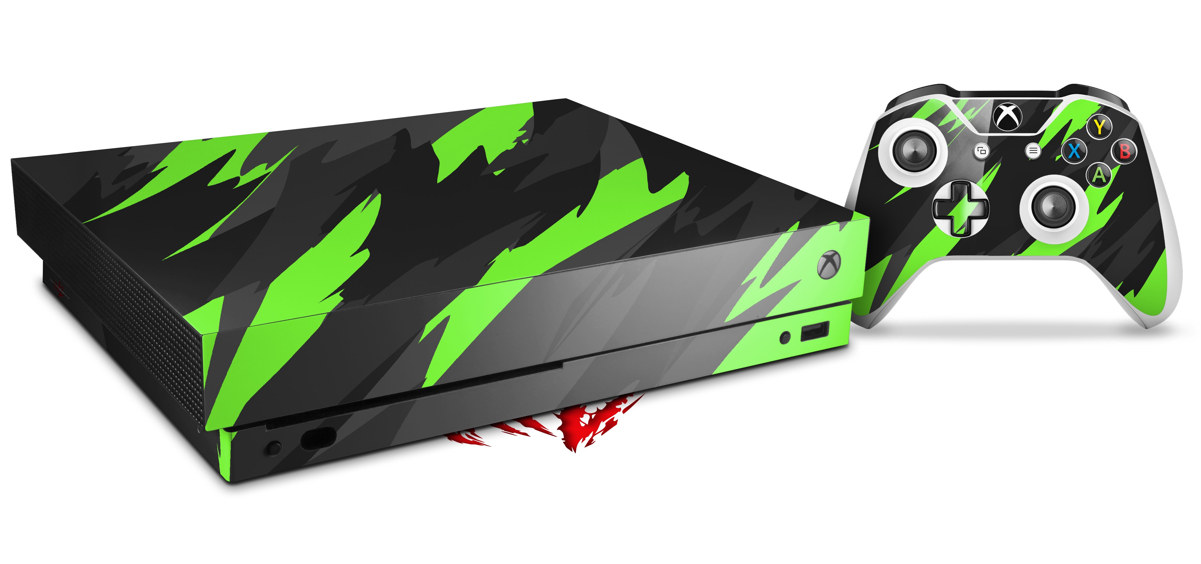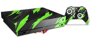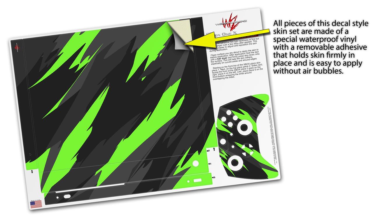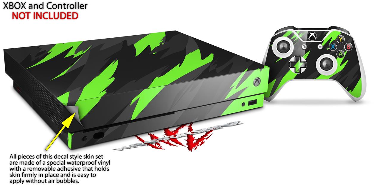 Skin Wrap for XBOX One X Console and Controller Jagged Camo Neon Green